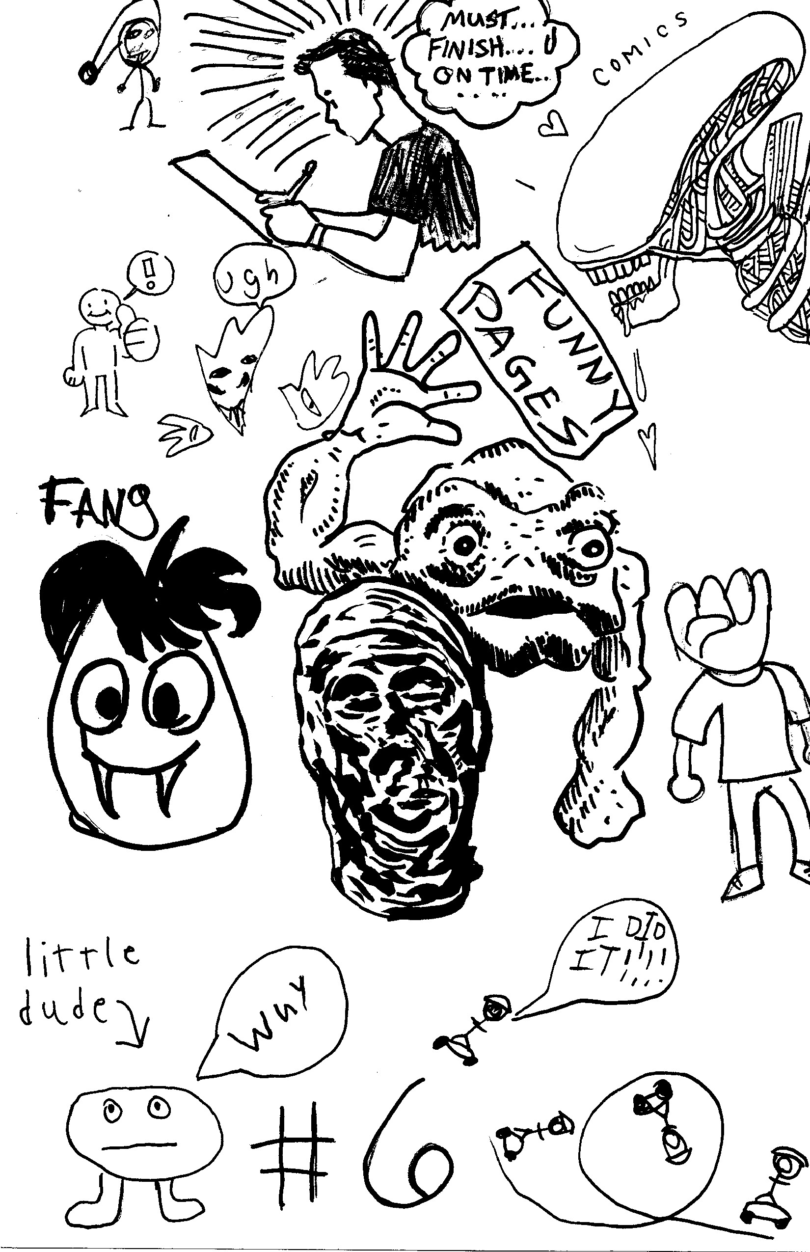 People of all ages get together to draw their own one page black and white comic to be assembled into a zine for each participant.